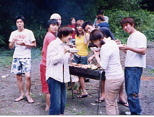 We enjoyed B.B.Q. After B.B.Q.,they put on my birthday party. I was thrown a birthday-cake in my face so I jumped into the Hotsu River !!! ,in order to wish my face It was july,23th,so water is stil very cold !!!At that time, I thought I must die. Any way,I had the happiest birthday in my life and learned that we must value our life !!!(HAHAHAHAHA) |