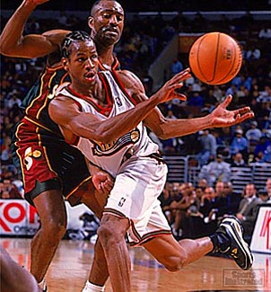 Iverson continued playing great, but they didn't win enough games. Iverson for the second straight year has put up great numbers. Even though his scoring dropped from 23.5 in 96/97 to 22 this year, Allen became more of a team player .He was willing to pass more, and he wanted to win. Iverson kept getting bad publicity and it's quite amazing that Iverson could play at the same high level despite all the bad publicity. How? He simply didn't care about what people meant.