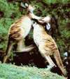 A Kangaroo is a marsupial mammal. It is a macropod which means "big foot". There are over 40 different types (species) of Kangaroo. The smaller ones are usually called Wallabies. The largest is the Red Kangaroo. It stands taller than a man and can weigh 85 kgs. It is the largest marsupial in the world. |