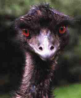 It has a long neck and small head and very long legs. It can run very fast and can also swim. The male emu incubates the eggs and takes care of the chicks once they are hatched. It is a very curious animal and will come to explore what's going on.