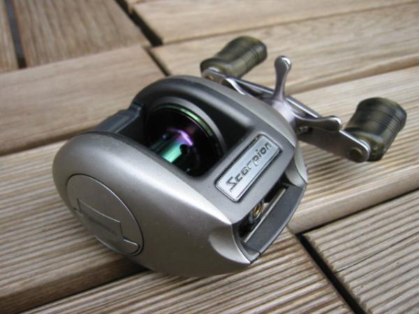 ScorpionMetaniumXT (left handle) made SHIMANO Shi is my favorite reel. I can use anything with this. I often use spinner bait and rubber jig. It's very comfortable to action the lure with my right hand. This reel is good at casting ,too. So I can use heavy vibration lure. |