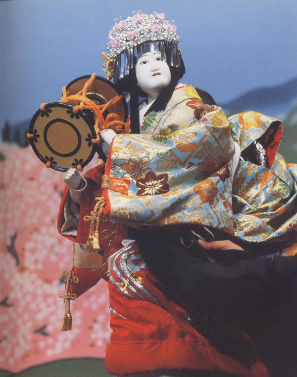 Bunraku is name of puppet drama that arose during Edo period. Bunraku is a union of three art of forms in which a Tayu or narrator, narrates a story to musical accompaniment by a Shamisen player, whist on stage doll manipulators make dolls perform to match the words of the tayufs story. This is sizuka gozen from Yositsune senbonzakura. |
