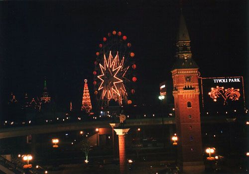 Night in Tivori Park. This scene is seen from west gate of Kurashiki station. In the night, illuminated atractions and buildings are very beautiful. You can see the clock tower on your right. This is special clock. Dolls in this clock dance every one hour. |