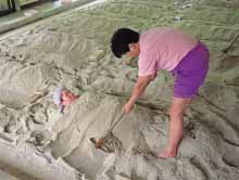 widths in the sands, a woman will cover sand. The rest is test of patience