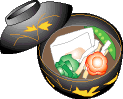 zouni is usually soy-sauce based with pieces of chicken, chinese cabbage,