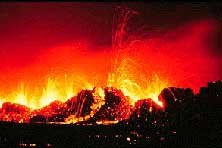 in top part of photo) and the sea. Frequent lava breakouts onto the surface