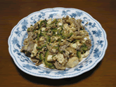 AThe goya, vegetables and meats are