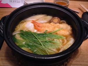 Nabeyaki Udon 1300 yen (udon noodles cooked in a pot with chicken and vegetables)