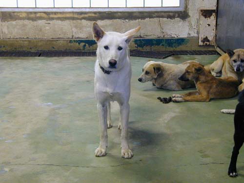 this dog has a collar but in Japan, If masters do not come over three days most of these dogs are killed. |