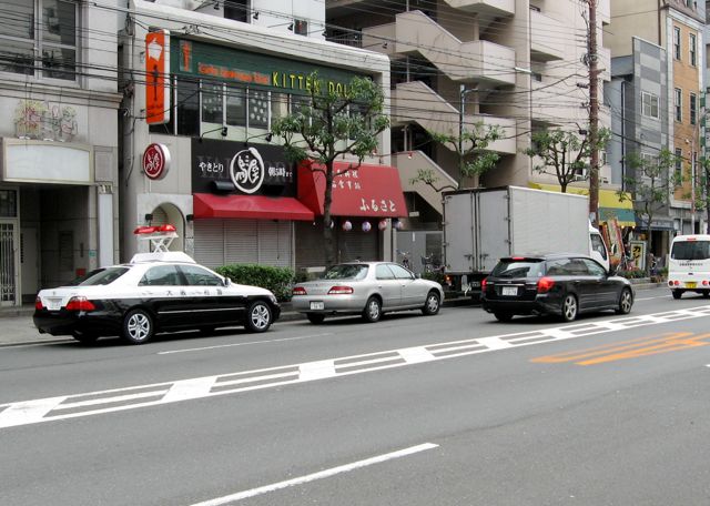 Don't get caught. Ironic that the building behind the cars is a, er, bar where, well, no guy with money needs to leave alone.
