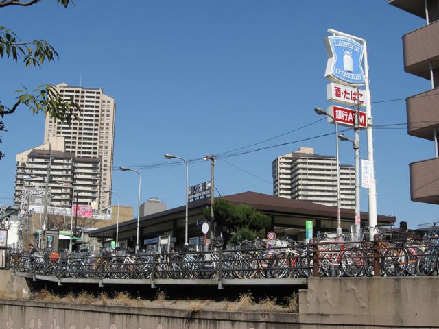 Sakuranomiya Station, behind the bicycles.