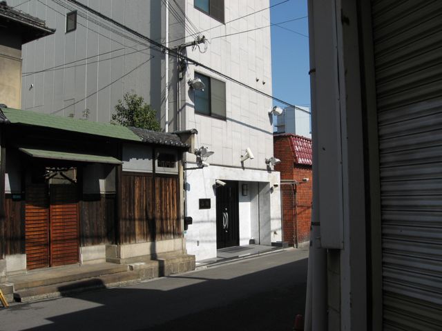 The local yakuza's place. Really. Note the spotlights and video cameras. Usually some big tricked-out Mercedes' and Lexus' parked around.